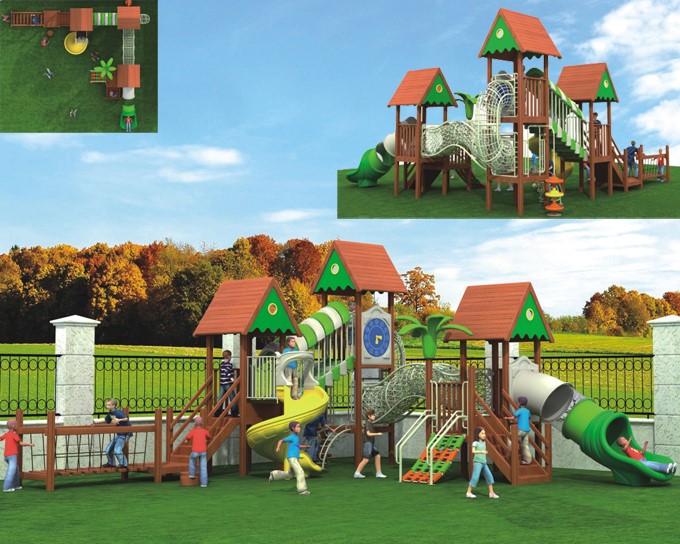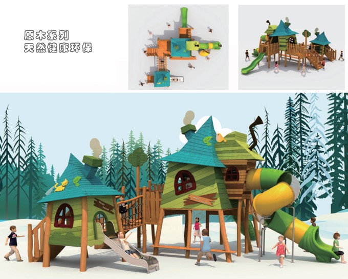 • 兒童組合滑梯-天然防腐硬木